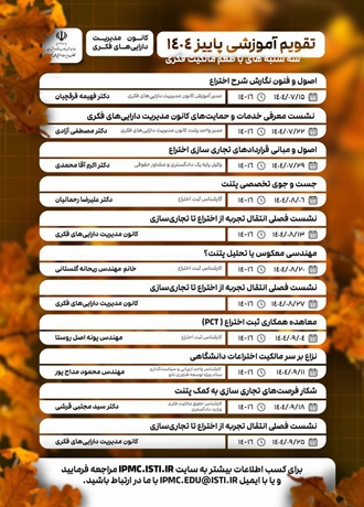 تقویم وبینارهای آموزشی فصل پاییز 1404کانون مدیریت دارایی‌‌های فکری منتشر شد.