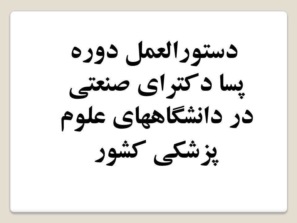 دستورالعمل دوره پسا دکترای صنعتی در دانشگاههای علوم پزشکی کشور