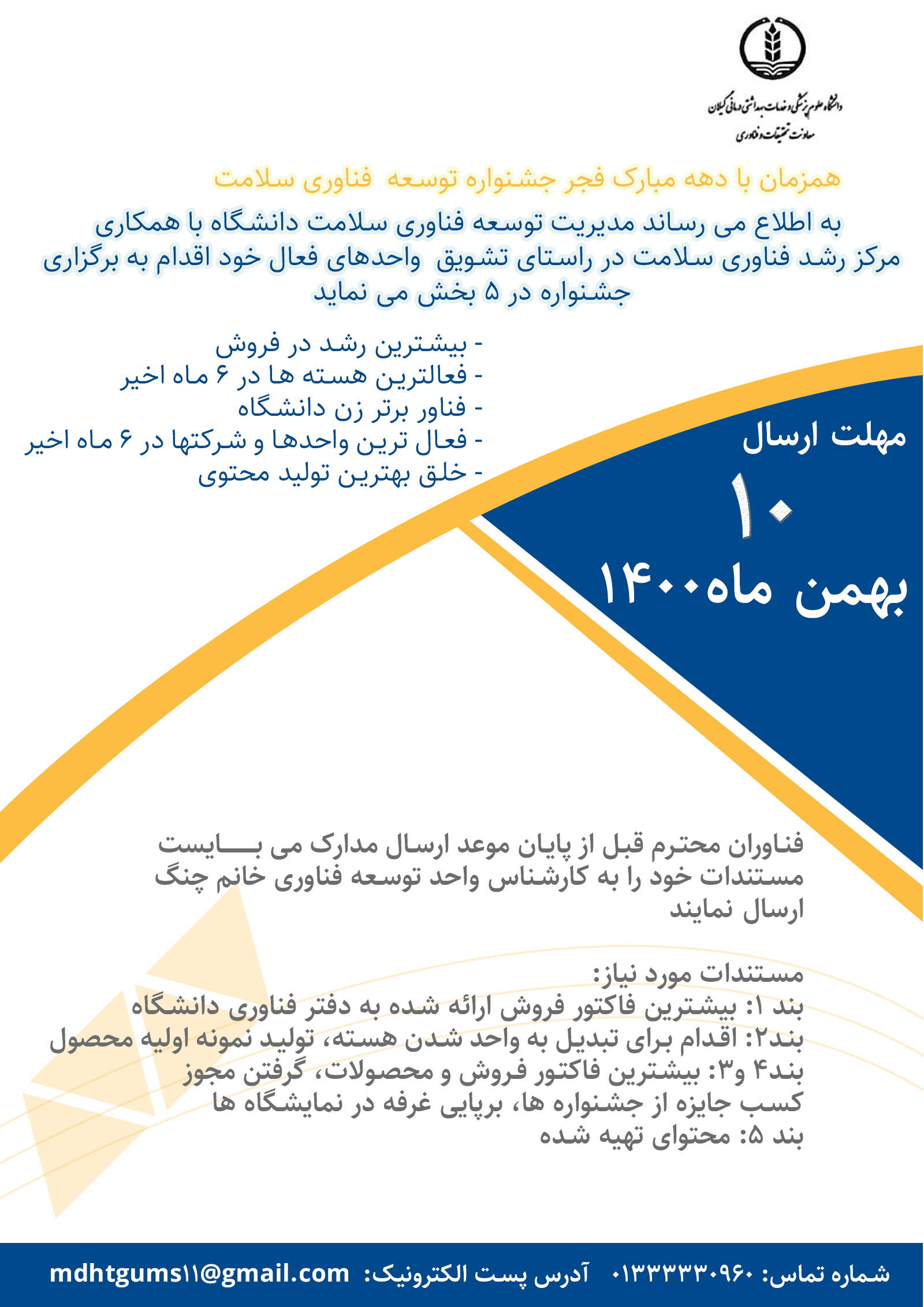 ایمیل توسعه فناوری سلامت: mdhtgums11@gmail.com