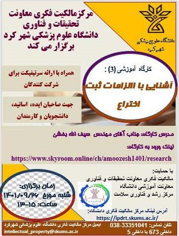 به استحضار می رساند، مرکز مالکیت فکری معاونت تحقیقات و فناوری دانشگاه علوم پزشکی شهرکرد در