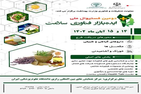 برگزاری دومین فستیوال ملی ایده بازار فناوری سلامت با موضوع داروهای گیاهی (14 و 15 آبان 1402)
